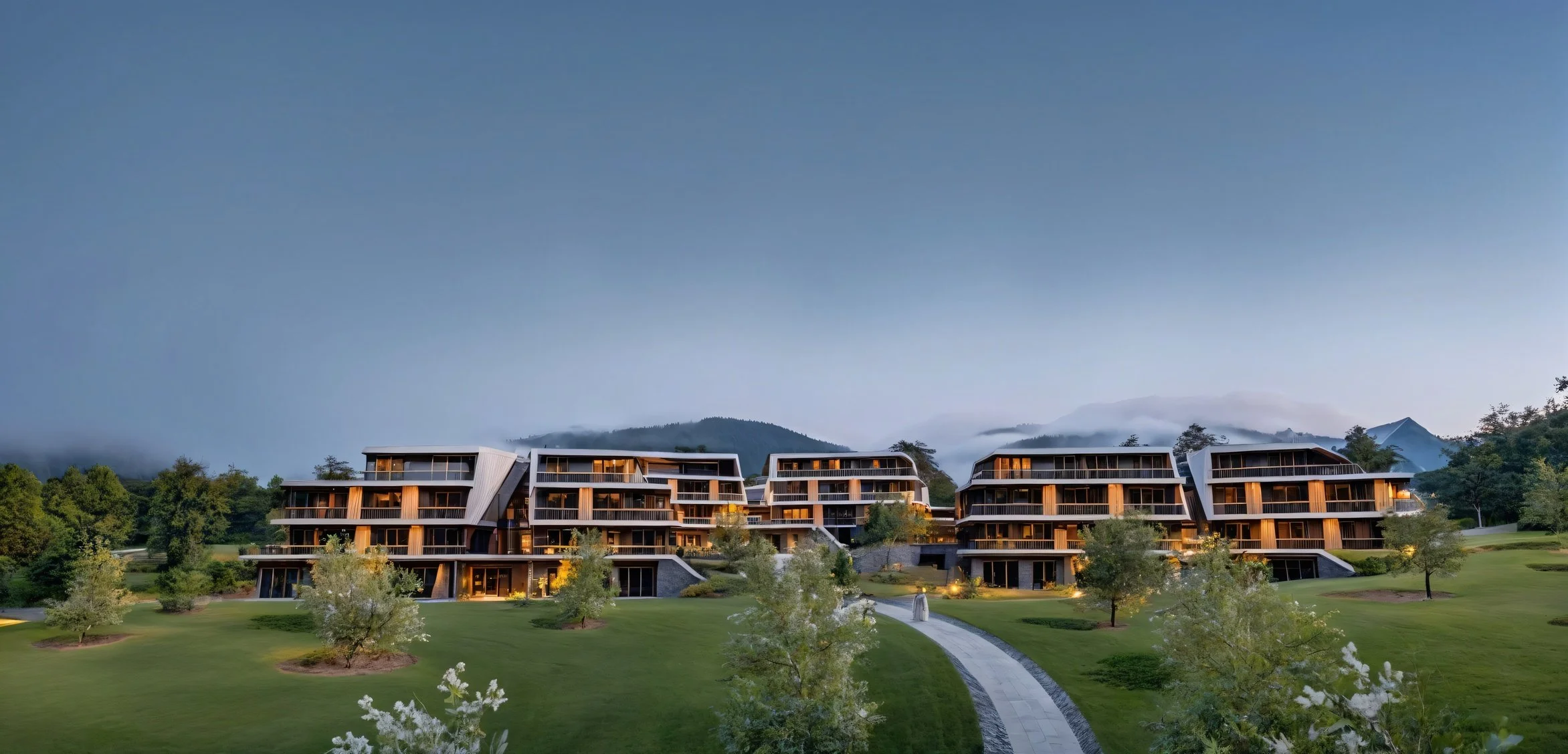 Planned as a more informal counterpart to the main hotel, the Apartment Hotel (apartment-hotel concept) is designed for longer stays, families, and repeat visitors—offering flexible units and a relaxed resort rhythm. The urban design approach breaks down the overall mass into several volumes with carefully placed “gaps” that preserve views, respond to neighboring buildings, and follow the site’s topography.