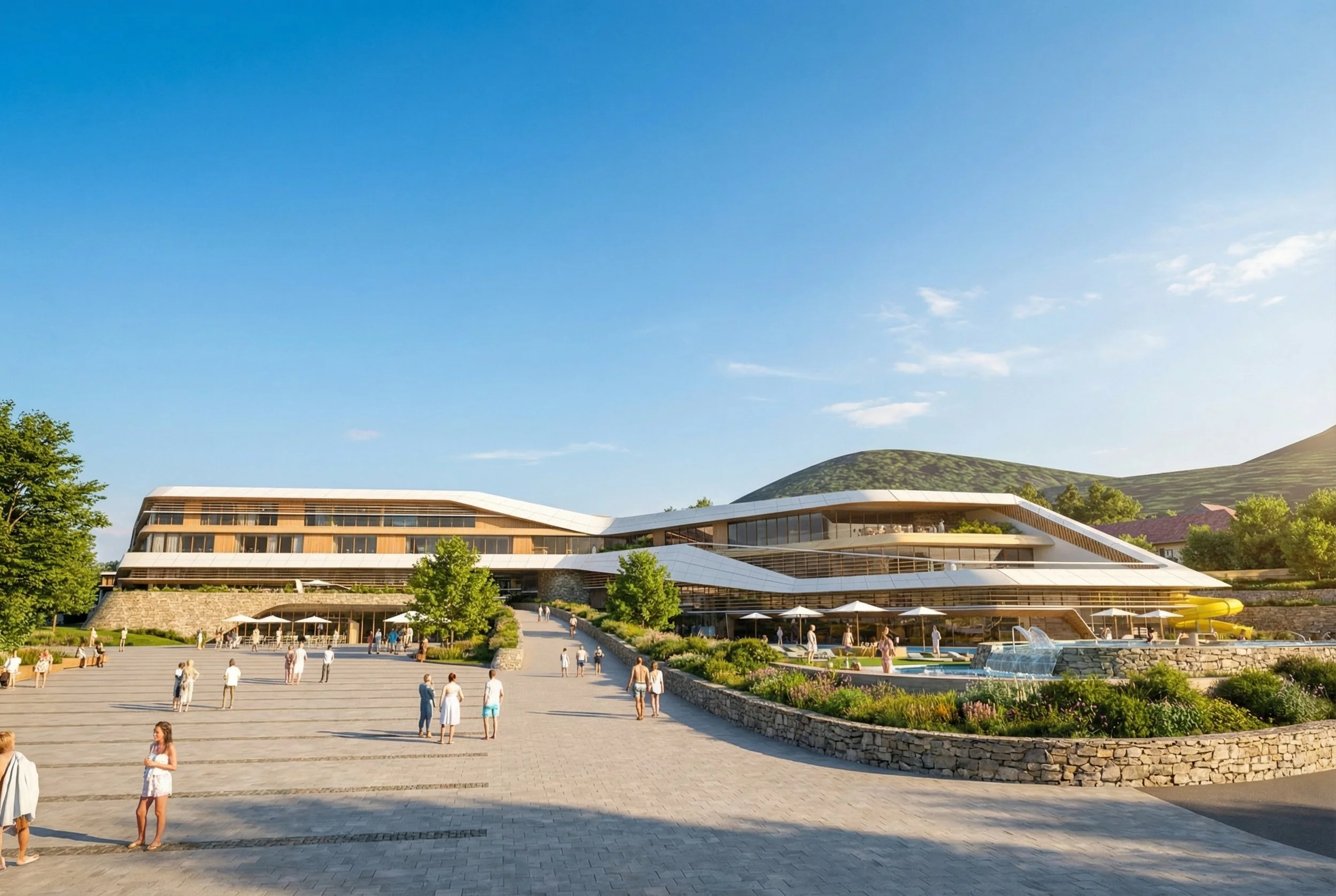 Water surface: ~1,200–1,400 m² dimensioned for ~800 guests simultaneously